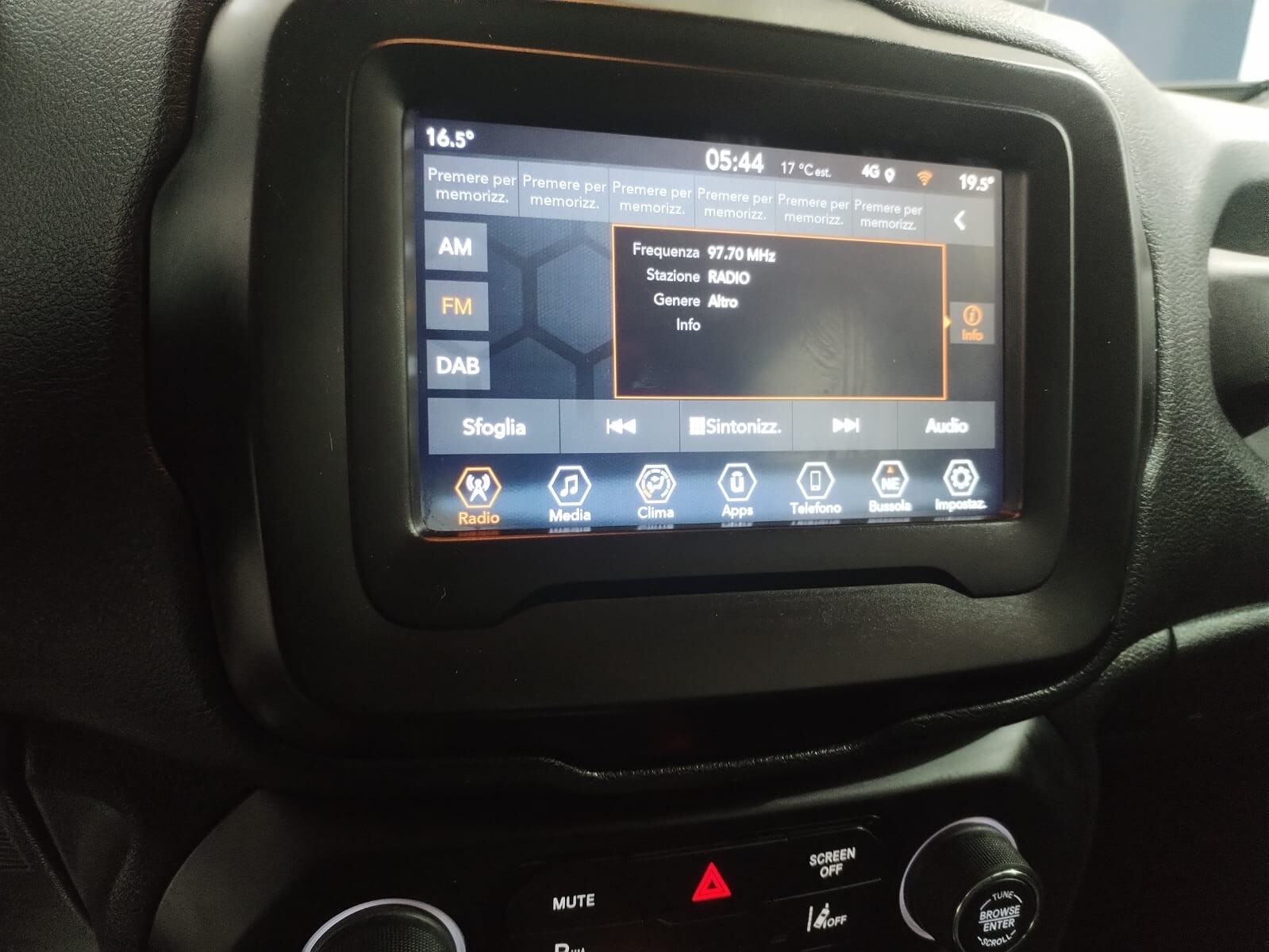 1” a colori – Hi.Fi U-Connect Bluetooth, USB, Android Auto, Apple CarPlay, con comandi