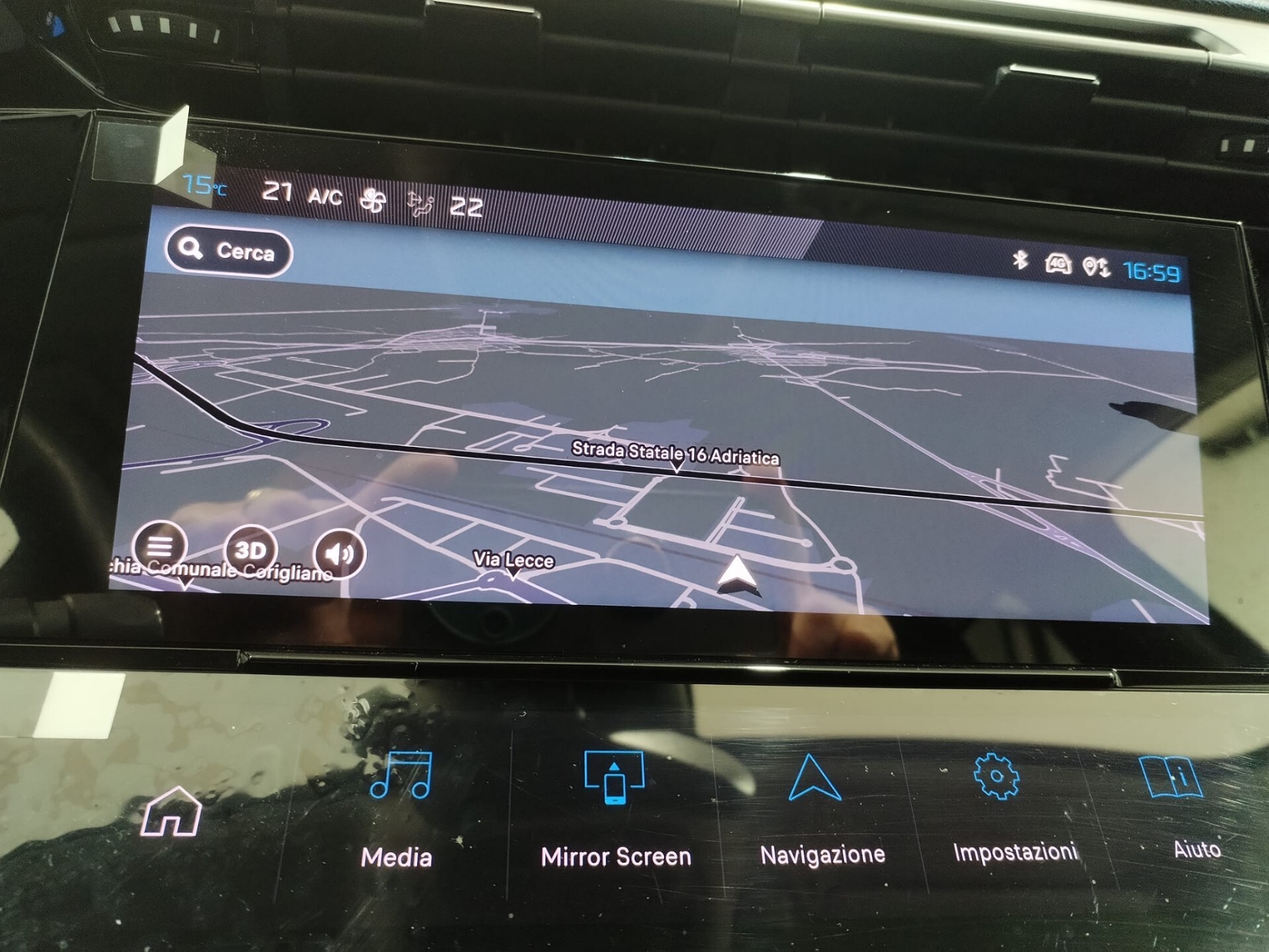 satellitare 3D iConnect Advanced - Regolazione elettrica assetto fari - Bracciolo centrale in pelle, con portaoggetti.